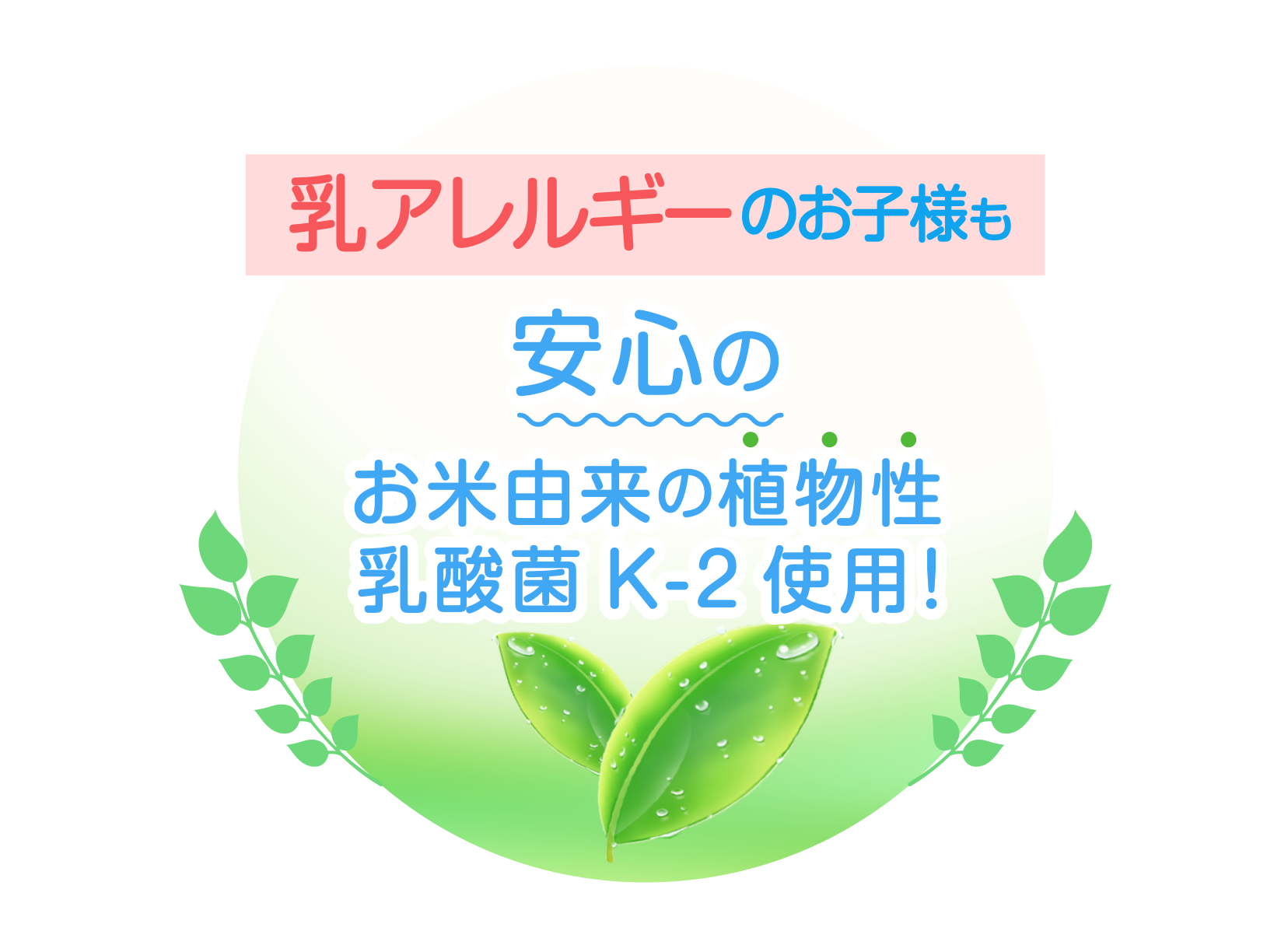 お米由来の植物性乳酸菌(K-2)だから、乳アレルギーのお子様でも安心。1日たったの6粒で216億個の乳酸菌を補うことができます。